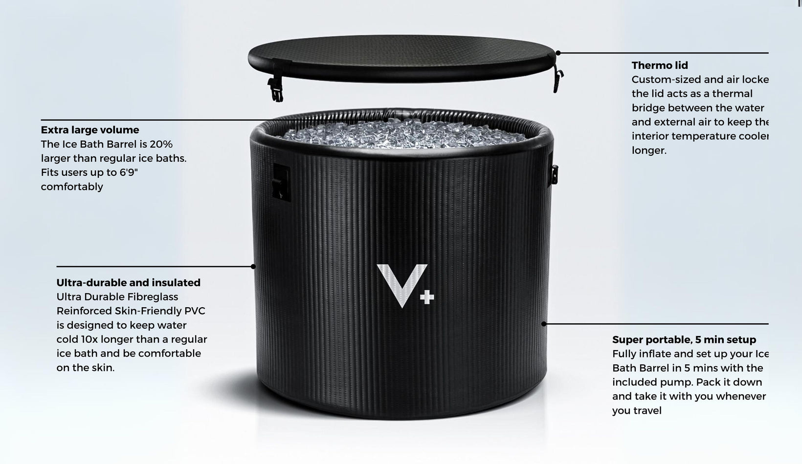 With a 90cm diameter, the Ice Bath Pro is 20% bigger than regular ice baths. Whether you are a 6'9" giant or want to ice bath with your partner, you will have plenty of room to plunge.