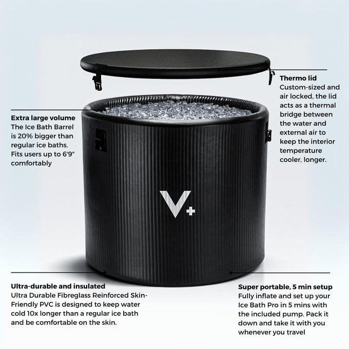 Our ultra-thick, fully insulated tub and lockable lid will create a thermal bridge between the inside/outside air and keep water cold 5x longer than a standard ice bath.